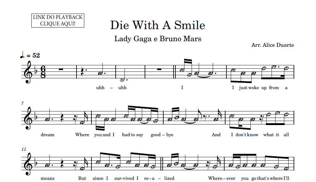 Partitura para Saxofone Alto com a transcrição da música música “Die With A Smile”, de Lady Gaga e Bruno Mars.