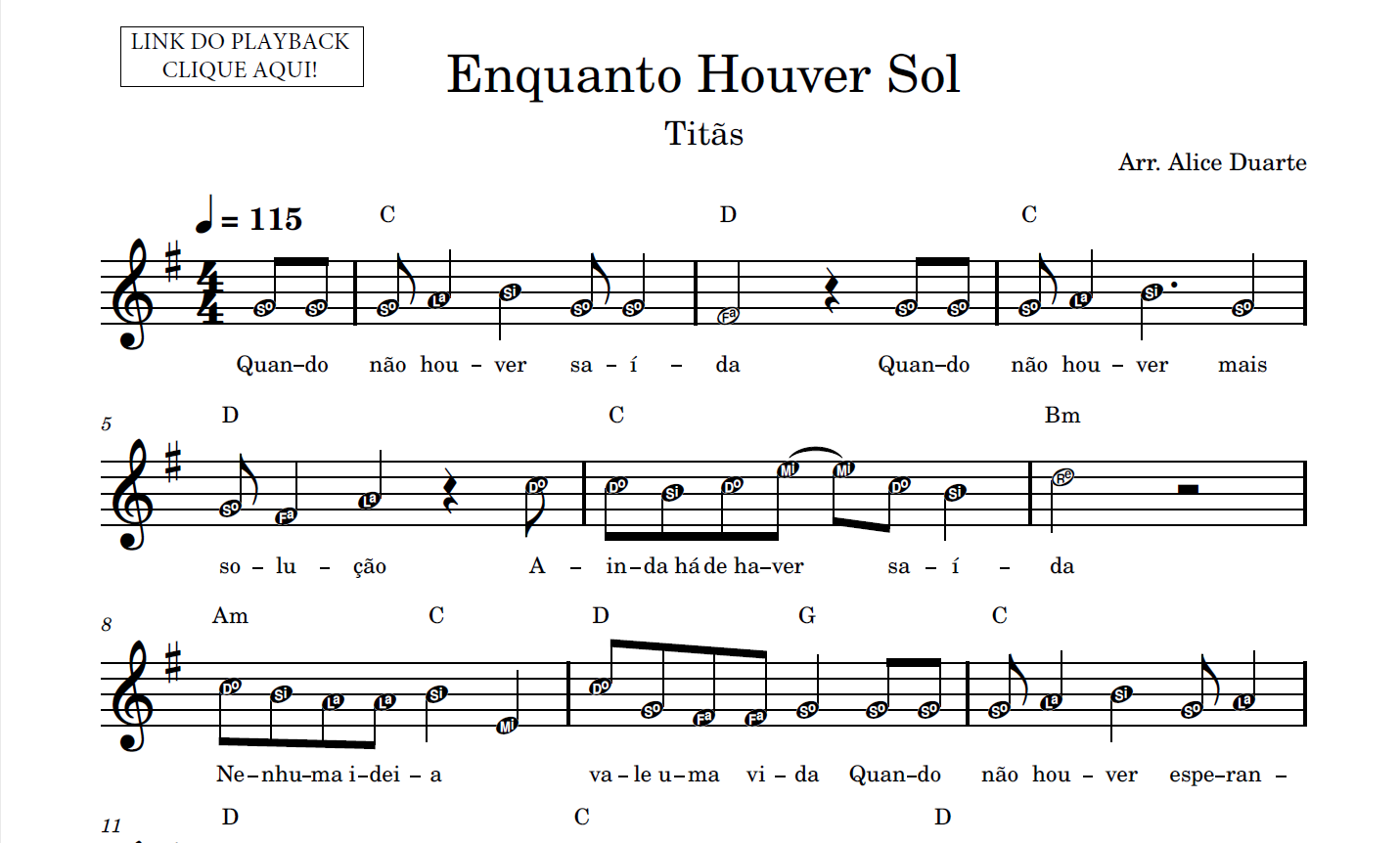 Enquanto Houver Sol – Partitura Facilitada
