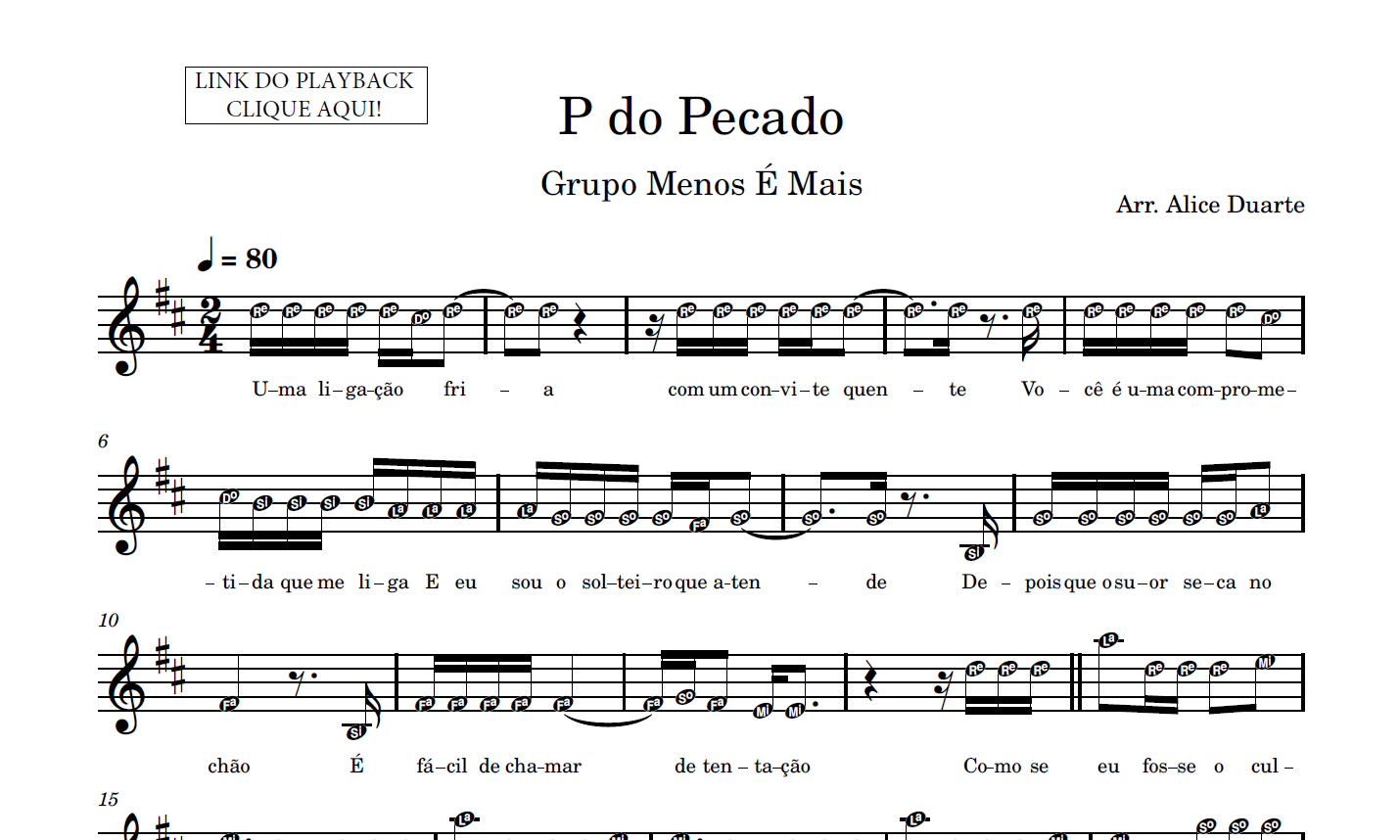 Partitura para Saxofone Alto com a transcrição da música “P do Pecado”, de Grupo Menos É Mais.
